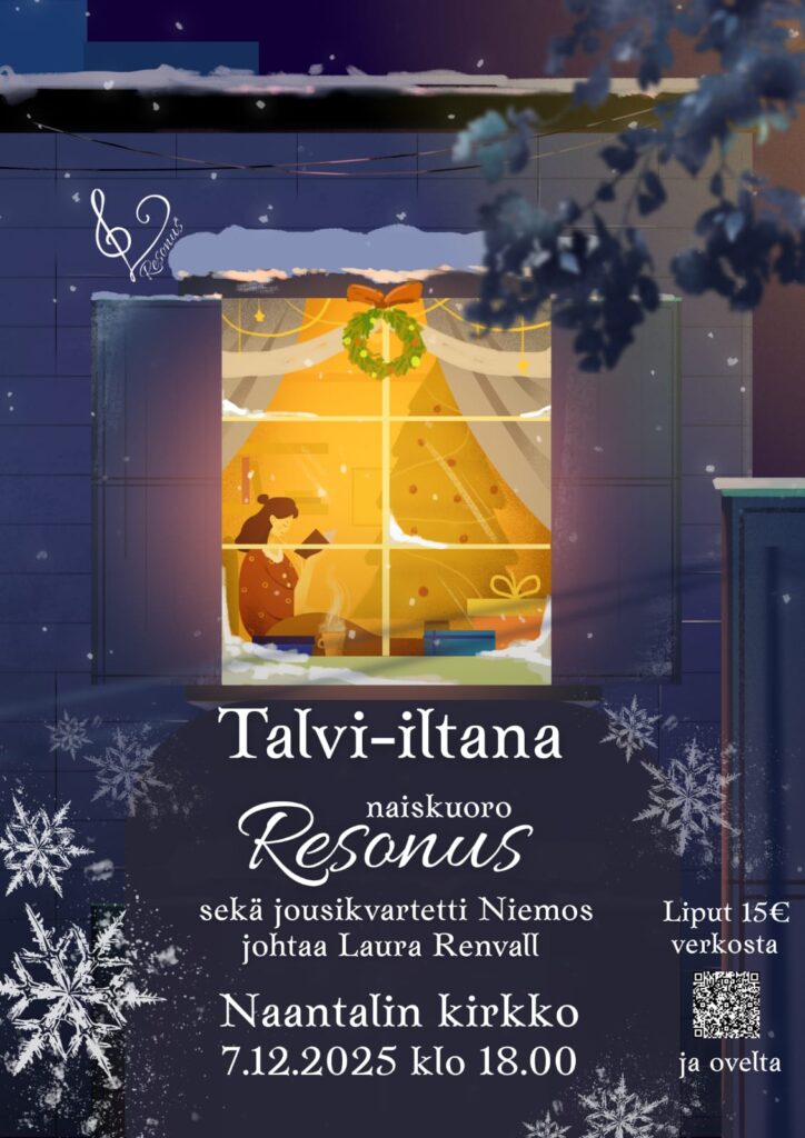 Tervetuloa joulukonserttiin Naantaliin! Joulu saapuu viimeistään, kun turkulainen Naiskuoro Resonus tuo joulun mukanaan Naantalin kirkkoon sunnuntaina 7.12. Mukana konsertoimassa myös jousikvartetti Niemos!